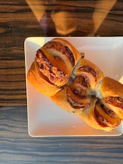 1ct食パン生地を使用して十勝産の粒あんを巻き込み焼き上げています。焼き上がりに有塩バターを絞ることであんこの甘さとバターの塩味の絶妙なハーモニーをお楽しみいただけます。