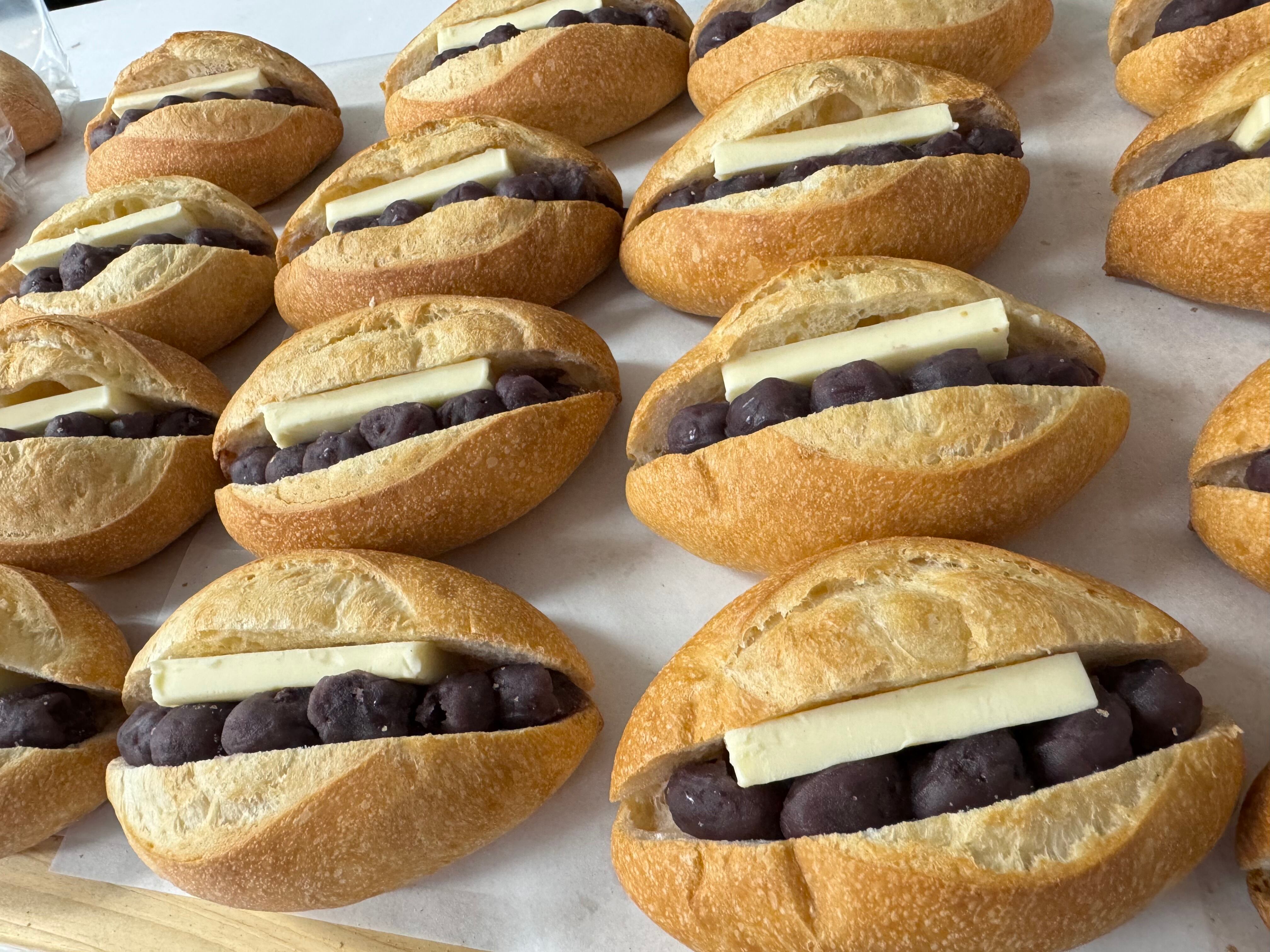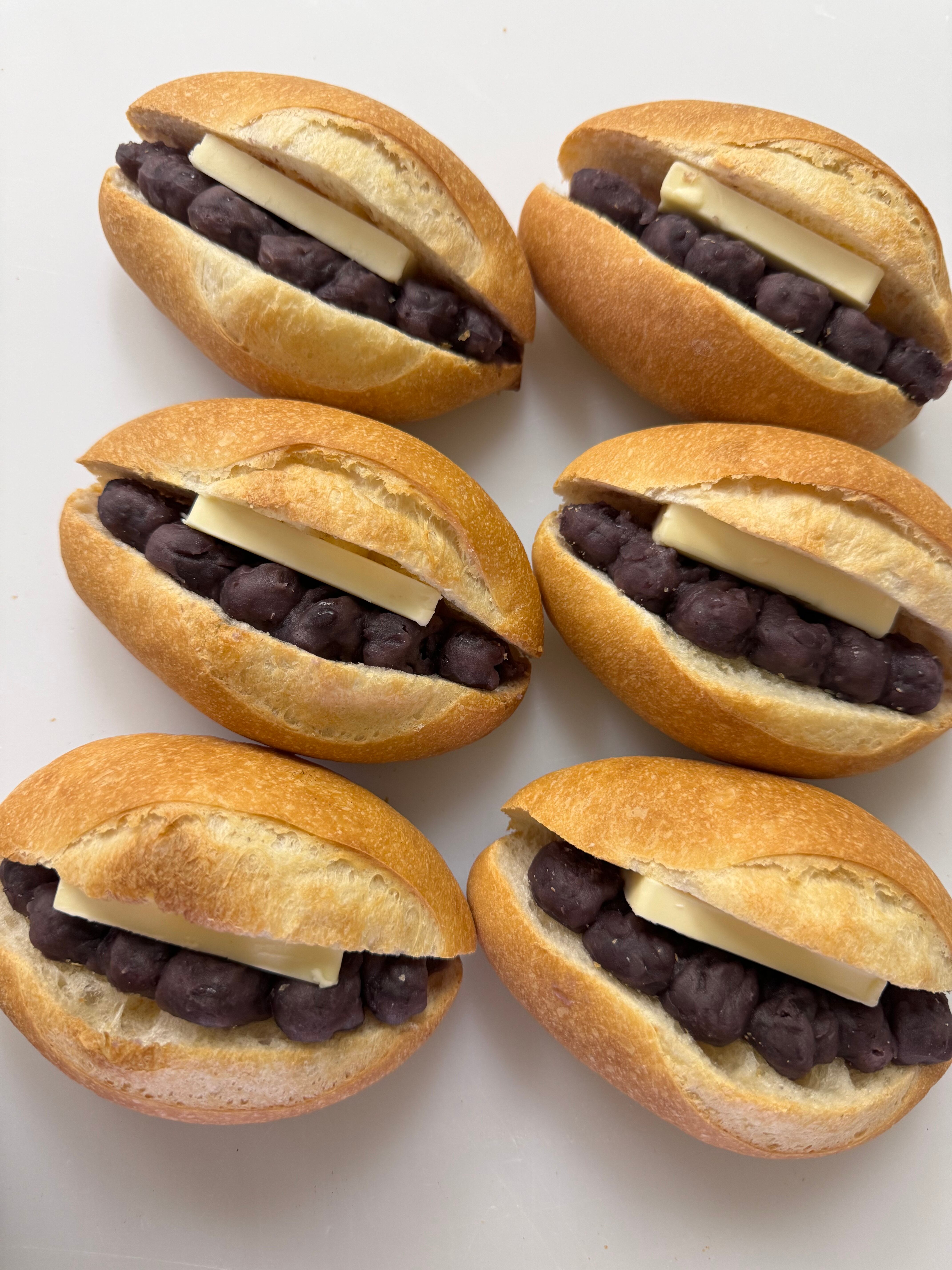 生クリームがたっぷり配合されたワンカラットの香ばしいふわふわ生地に十勝産のつぶあんと北海道産のバターをはさみました。